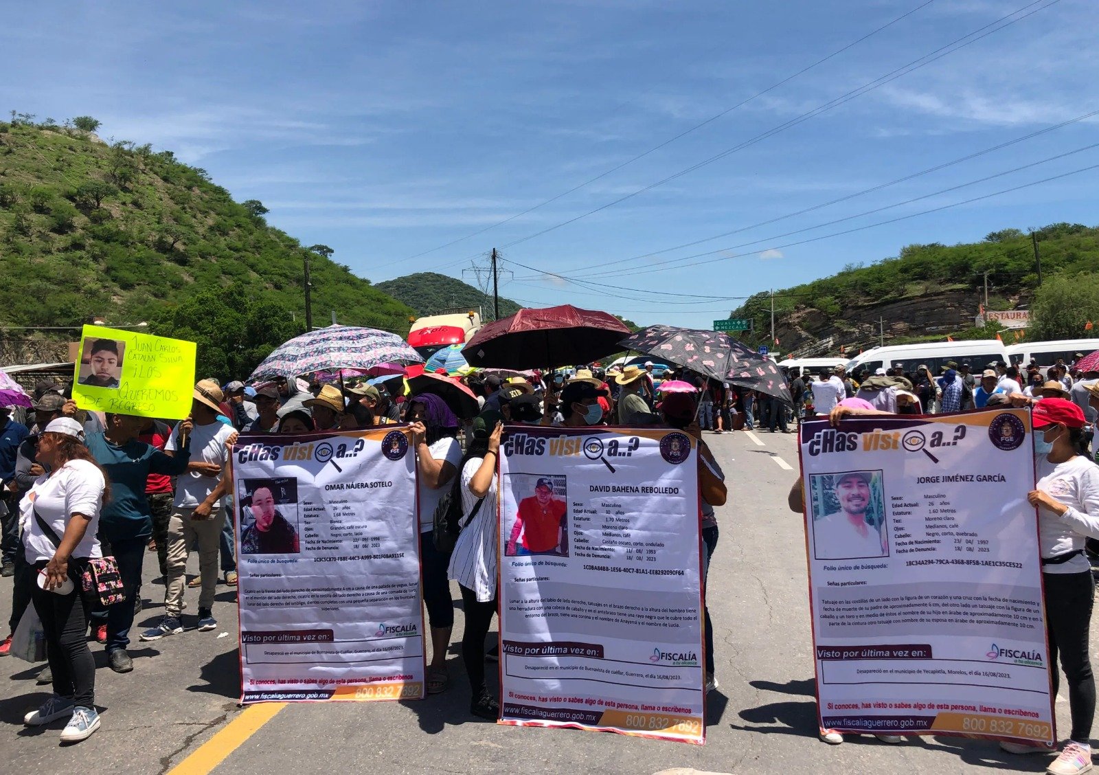 Habitantes de la zona norte del estado de Guerrero, bloquearon la carretera federal México-Acapulco para exigir la presentación de 14 personas desaparecidas en distintos hechos, 13 de ellos en los últimos tres meses.