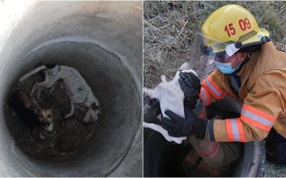 Bomberos rescatan a perros que cayeron a un pozo; tenían un mes desaparecidos
