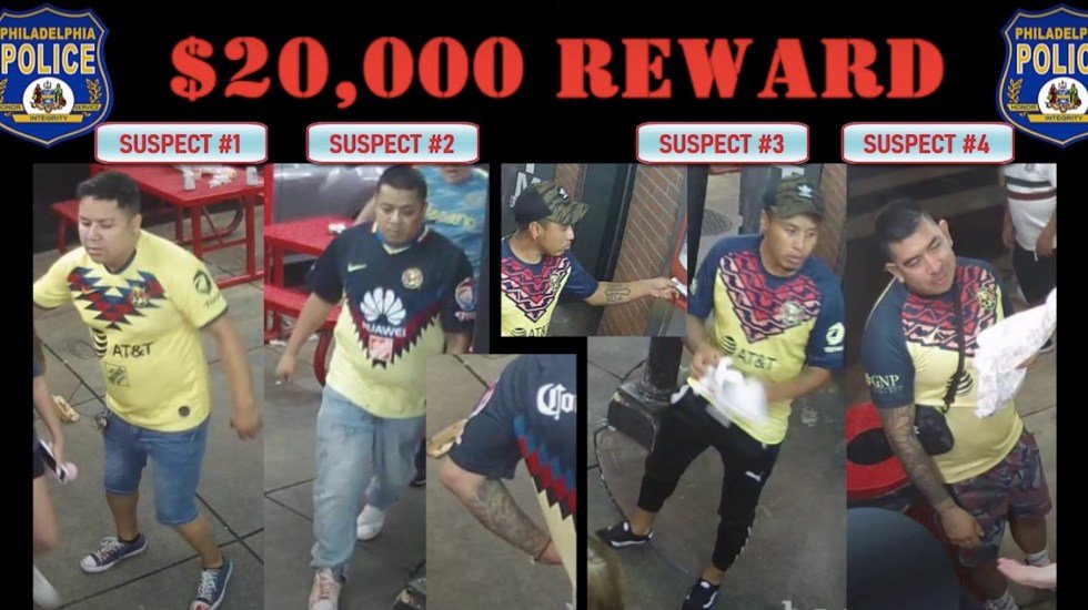 La Policía de Filadelfia ofrece una recompensa de 20 mil dólares por información sobre cuatro hombres aficionados del América que participaron en una riña que dio como resultado un muerto en dicha ciudad.
