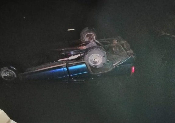 Una camioneta cayó al río en la zona conocida como “Las Calabazas”, donde se reportó que cayó de toldo en el cuerpo de agua y personas presuntamente atrapadas.