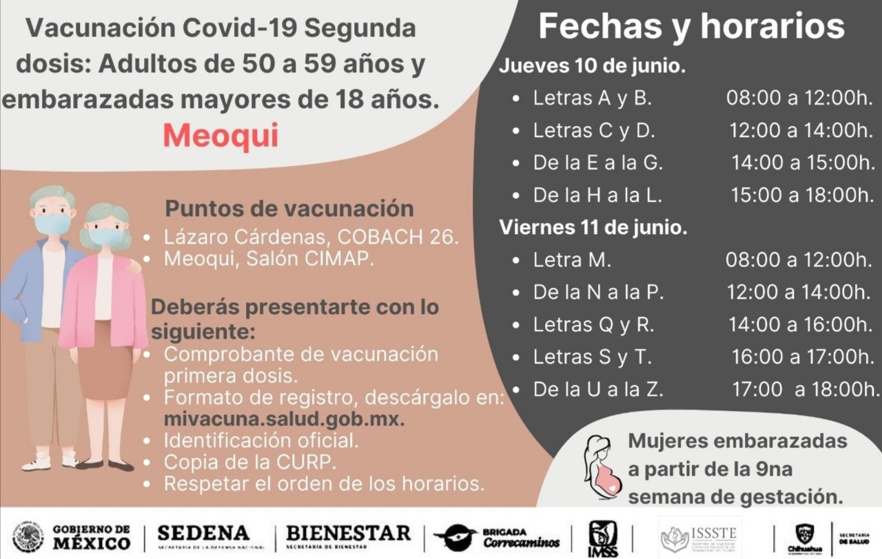 Camargo, Meoqui, Rosales y Saucillo harán 2a aplicación de vacuna el jueves