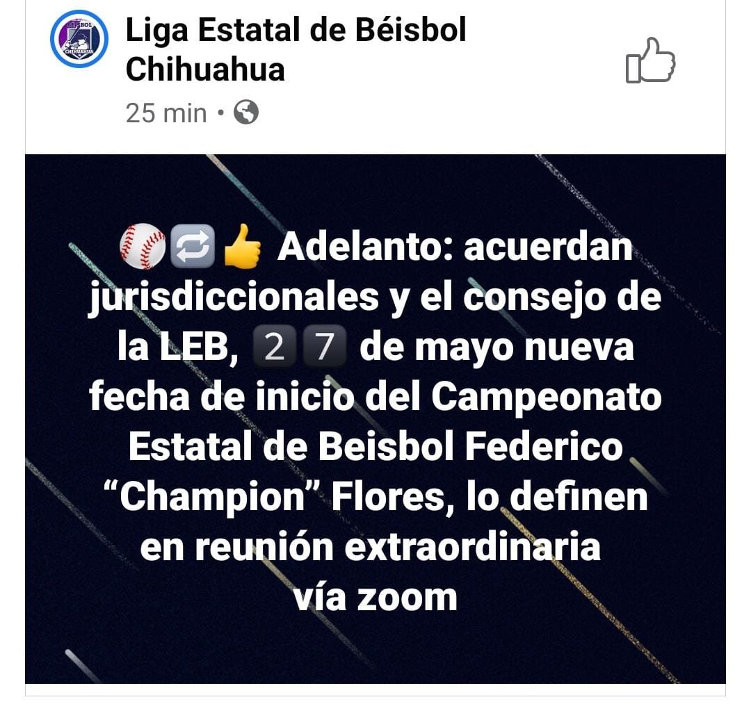 La Liga Estatal de Béisbol Chihuahua informó que cambiarán la fecha de inicio del Campeonato.