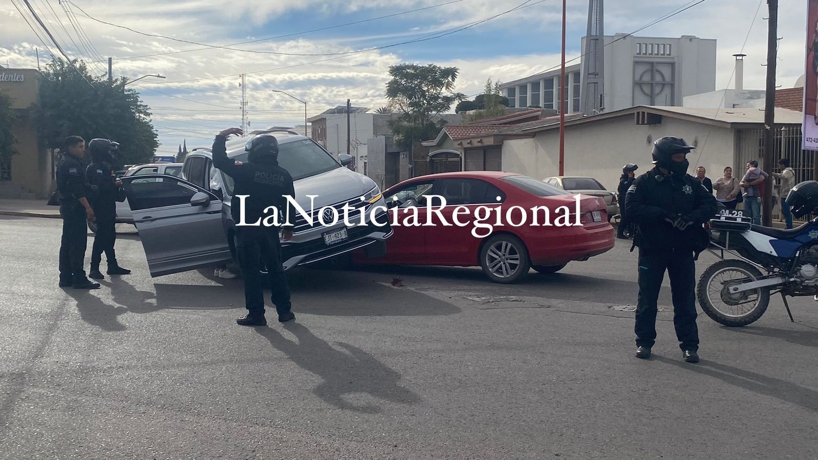 Hace unos momentos un aparatoso accidente se presentó sobre la avenida Chuviscar y Segunda de esta ciudad, dónde unos de los conductores se llevó tremendo susto al quedar arriba de otro vehículo y casi volcar.