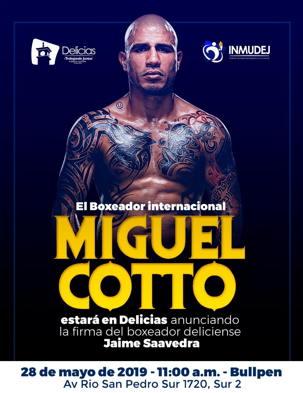 El evento se realizará este martes 28, a las 11 de la mañana, en el lugar conocido como Bullpen, donde se contará con la presencia del Campeón del Mundo, quien personalmente realizará la firma del convenio con el joven deliciense Jaime Saavedra.