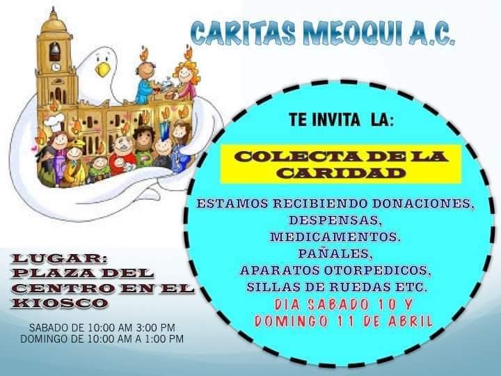 Cáritas Meoqui AC invita a los feligreses y ciudadanía en general a apoyar en la Colecta de la Caridad que se realizará el próximo fin de semana.