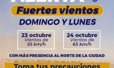 La Coordinación Municipal de Protección Civil, informa que para este domingo 23 y lunes 24 de octubre, se esperan fuertes rachas de vientos, al norte de...
