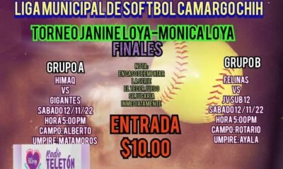 Este sábado se llevarán a cabo los encuentros finales de la liga municipal de softbol de Camargo. Estos encuentros son en beneficio del Radioteletón 2022. El...