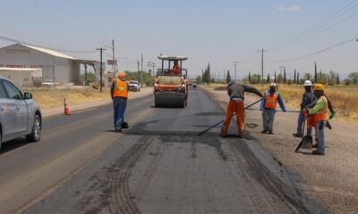 El presidente municipal Jesús Valenciano García supervisó los trabajos en la obra de pavimentación que realiza el Gobierno del Estado en la carretera Delicias–presa Las Vírgenes,...