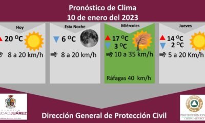 Con base en informes del Servicio Meteorológico Nacional, la Dirección General de Protección Civil pronostica un martes soleado, con una temperatura máxima que alcanzará los 20...