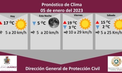 La Dirección General de Protección Civil, con base en informes del Servicio Meteorológico Nacional, pronostica un jueves soleado con una temperatura máxima de 17 grados Celsius...