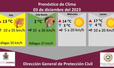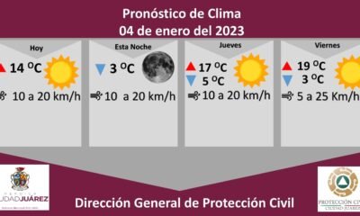 La Dirección General de Protección Civil, con base en informes del Servicio Meteorológico Nacional, pronostica una temperatura máxima de 14 grados Celsius y mínima de 3...