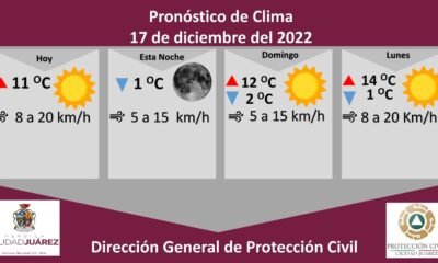 La Dirección General de Protección Civil, con base en informes del Servicio Meteorológico Nacional, pronostica un sábado soleado con una temperatura máxima de 11 °C, en...