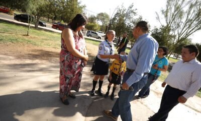 El Presidente Municipal, Cruz Pérez Cuéllar, acompañado de su esposa Rubí Enríquez Parada, entregaron de forma oficial la instalación de una malla sombra para el Consejo...