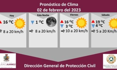 La Dirección General de Protección Civil, con base en informes del Servicio Meteorológico Nacional, pronostica una temperatura máxima de 16 grados Celsius para este jueves, en...