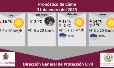 La Dirección General de Protección Civil, con base en informes del Servicio Meteorológico Nacional, pronostica un martes con una temperatura máxima de 16 grados Celsius, mientras...