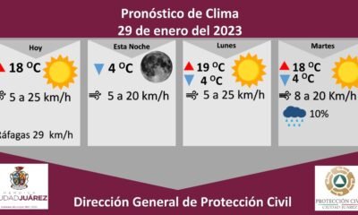 La Dirección General de Protección Civil, con base en informes del Servicio Meteorológico Nacional, pronostica un domingo soleado con una temperatura máxima de 18 grados Celsius,...