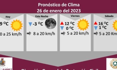 La Dirección General de Protección Civil, con base en informes del Servicio Meteorológico Nacional, pronostica un jueves soleado con una temperatura máxima de 9 grados Celsius,...