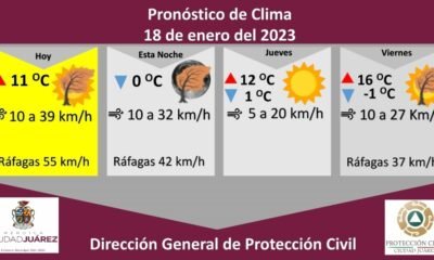 La Dirección General de Protección Civil, con base en informes del Servicio Meteorológico Nacional, pronostica un día mayormente soleado con una temperatura máxima de 11 grados...