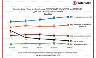 La medición se hizo a 400 personas con fecha del 27 de mayo. Este miércoles, la encuestadora Rubrum dió a conocer su última medición de...