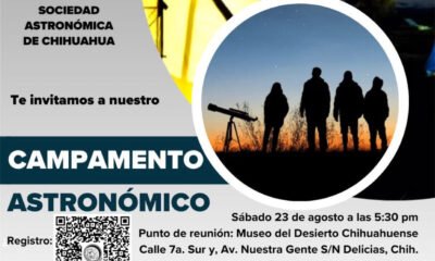 La sociedad astronómica de Chihuahua invita a la ciudadanía a su campamento astronómico en el Ejido el Rebalse, en Rosales. El evento se llevará a cabo...