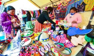 Yajaira Bustillos, encargada de asuntos indígenas de gobierno municipal, invitó a la ciudadanía a comprar en los stands de artesanías tarahumaras. “Es 100 por ciento hecho...