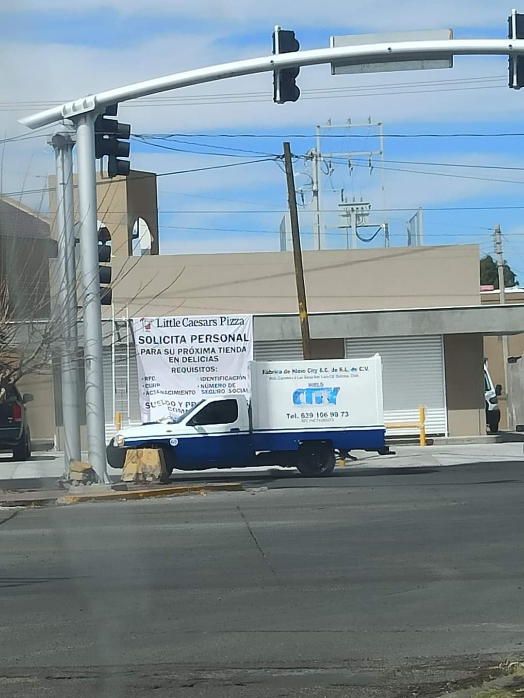 Delicienses han compartido en redes sociales una fotografía en la que se observa una lona en la que se solicita personal para la próxima apertura de la pizzería Little Caesars.