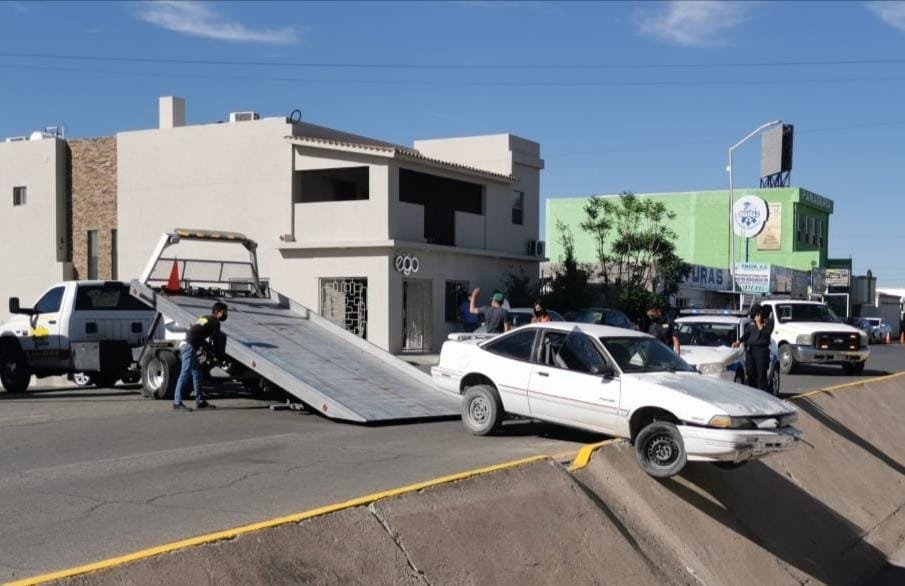 Esta tarde se registró un accidente donde un vehículo cayó a un dren pluvial que se encuentra sobre avenida Gómez Morín y calle quinta, en el sector sur.