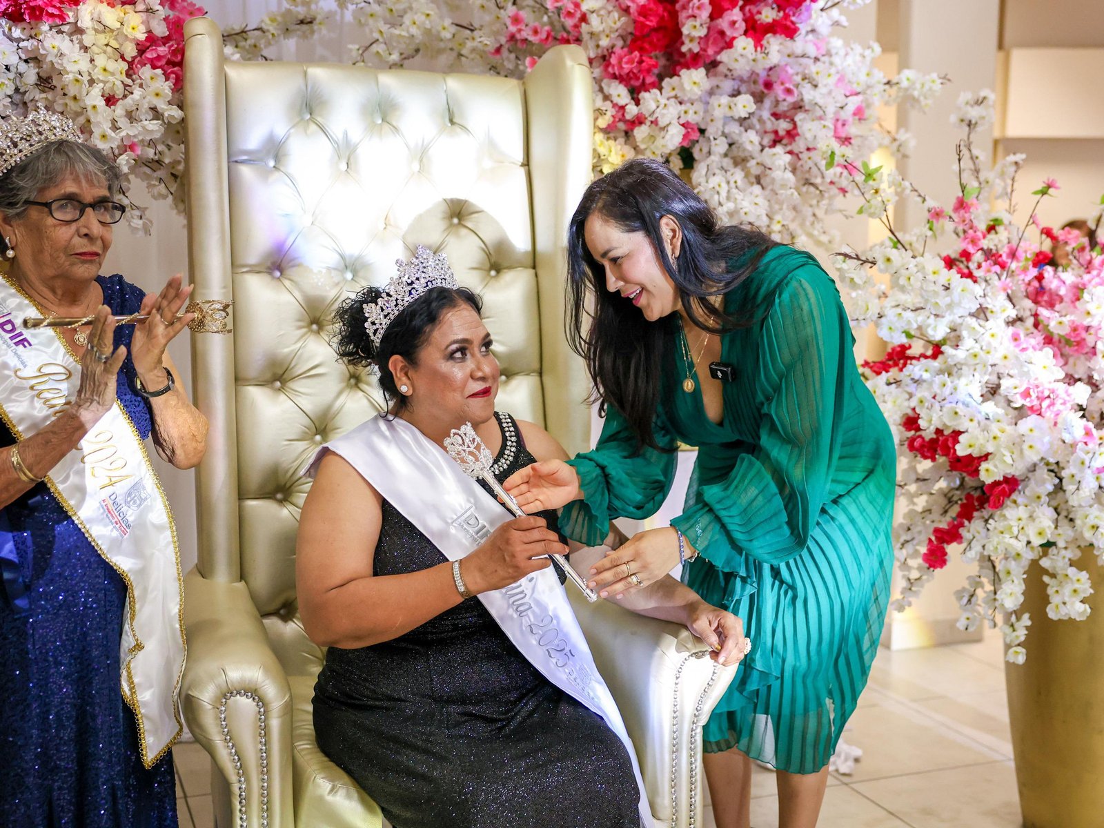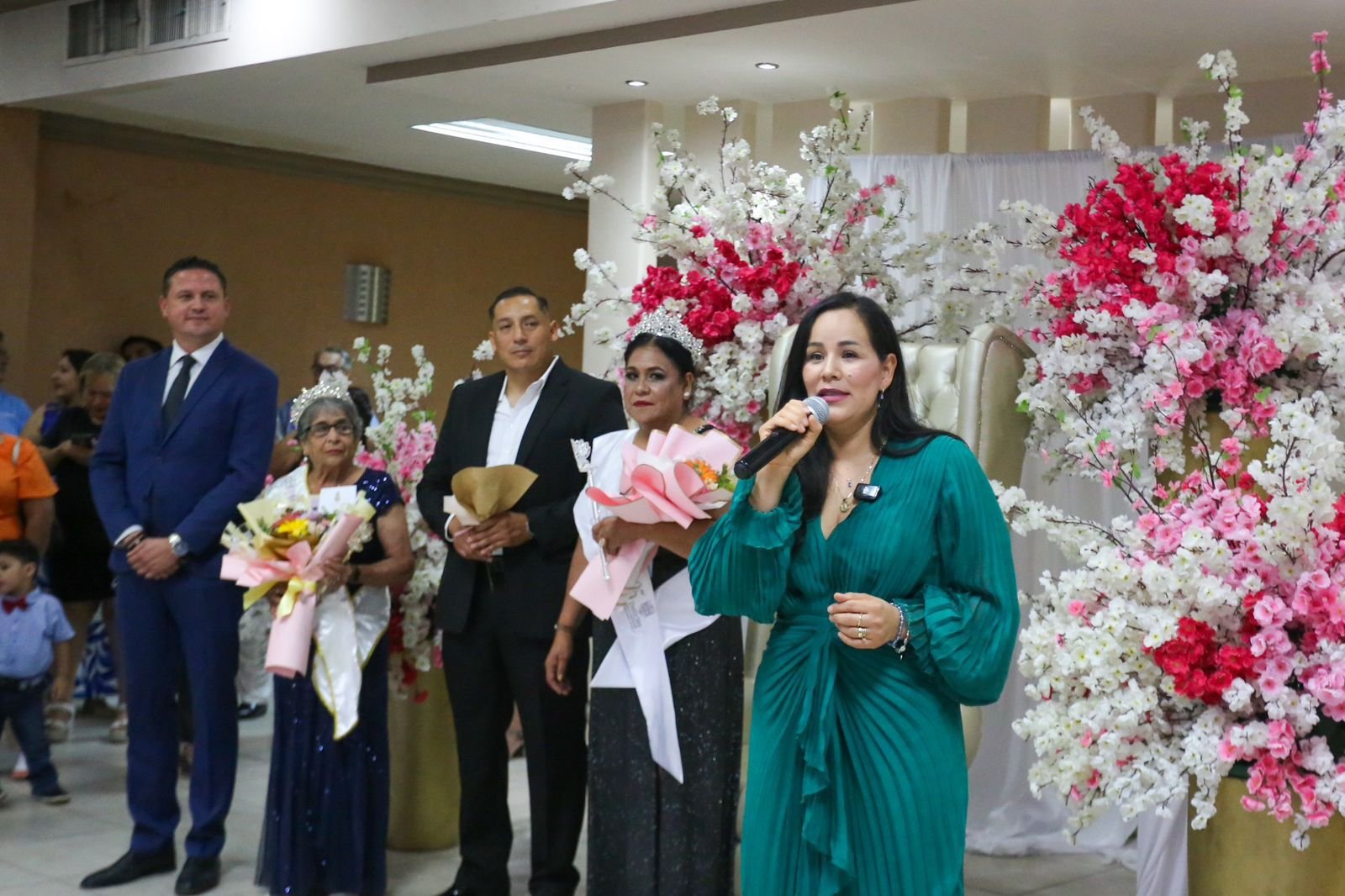 Uno de los momentos más emotivos fue la coronación de la Reina del Baile de los Abuelos, título que este año recibió la señora María de la Luz Sánchez Zavala, originaria del kilómetro 92, quien con emoción recibió la banda y la corona de manos de la presidenta del DIF Municipal, Alma Limas de Valenciano.