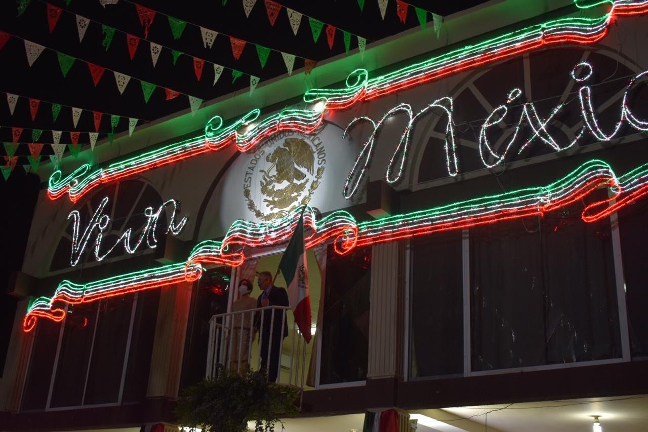 El evento dio inicio a las nueve y media de la noche cuando la escolta conformada por elementos de la Dirección de Seguridad Pública, hizo la entrega del lábaro patrio al alcalde, Ismael Pérez Pavía, quien se dirigió acompañado de su esposa al balcón de la sala de cabildo.