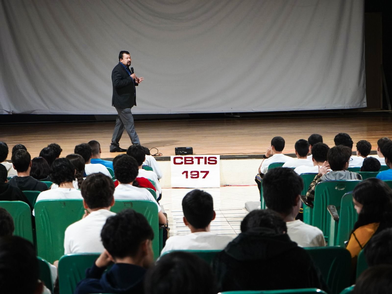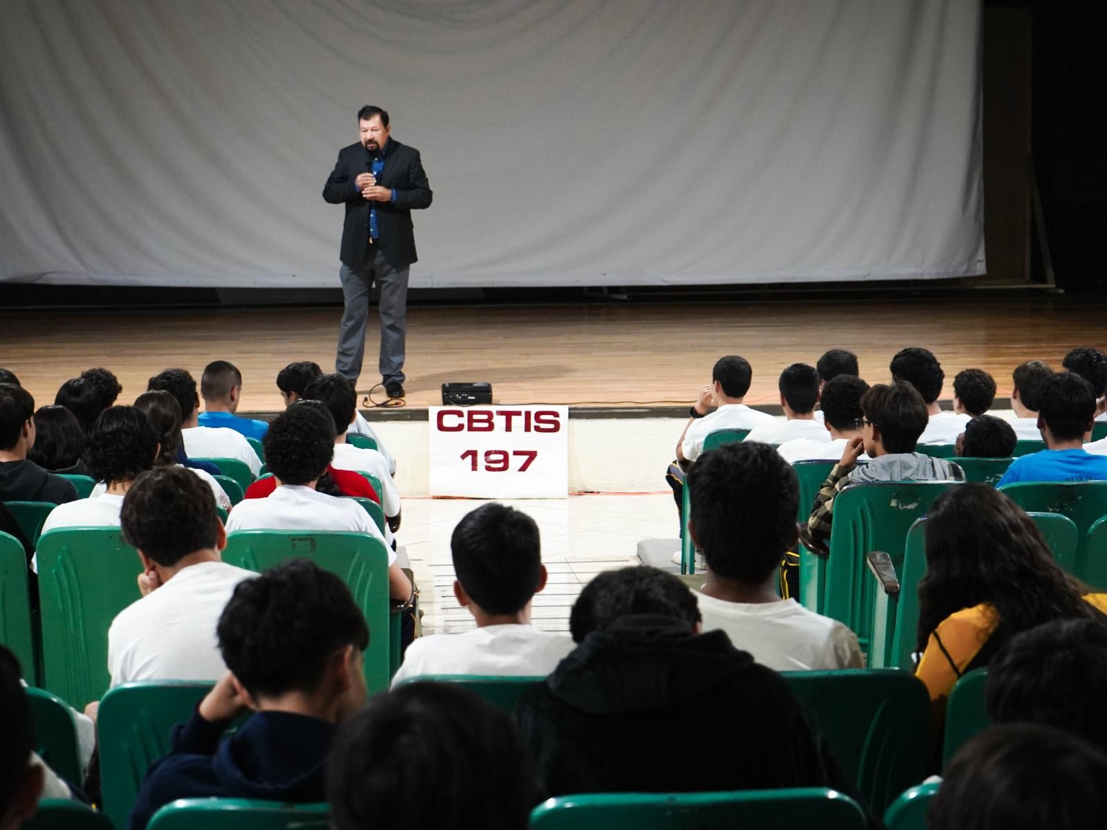 Con el propósito de fomentar una juventud informada, responsable y consciente de sus derechos, el alcalde municipal Rodolfo “Fito” Gardea Palma participó en una charla dirigida a estudiantes del CBTIS No. 197, donde compartió un mensaje de cercanía y reflexión con las y los jóvenes asistentes.
