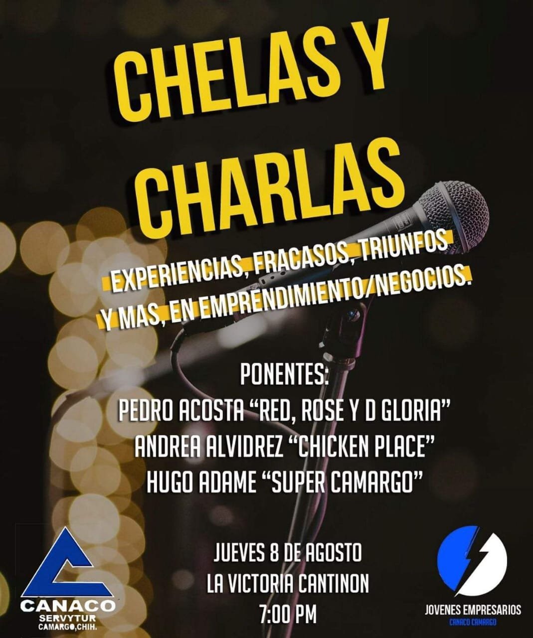 Camargo.- La Camara Nacional de Comercio, presidida por Idalia López, a través de la organización “Jóvenes Emprendedores” invita a la población en general al concepto “Chelas y Charlas”.