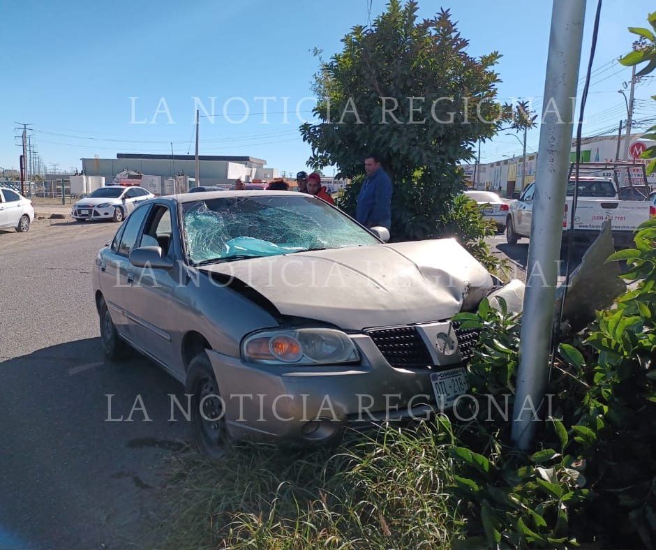 El choque fue de un automóvil de la marca Nissan, linea Sentra, color gris, modelo 2002 y placas de circulación DTL-218-B del estado de Chihuahua.