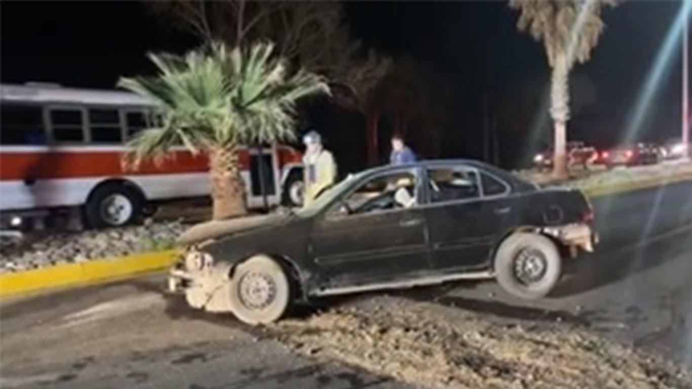 El auto Honda era tripulado por una pareja de adultos, quienes luego del choque cayeron a un dren que corre paralelo a la vialidad.