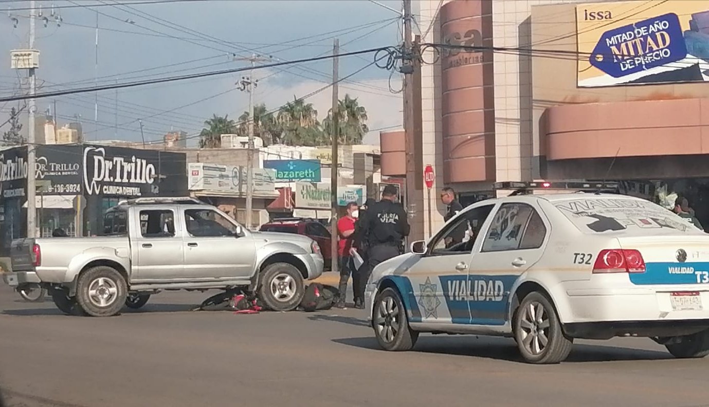 Este accidente fue atendido por el departamento de vialidad y afortunadamente no hubo lesionados a pesar de que la motocicleta quedó debajo de la camioneta.