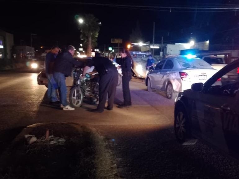 Choque entre auto y moto deja 2 lesionados