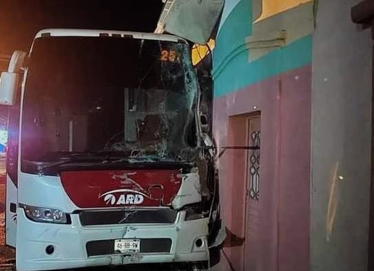 El autobús impactó en la fachada de Tienda Más y el Tsuru contra la acera de un domicilio.
