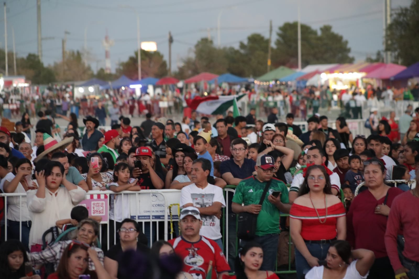 Niños jóvenes y adultos llegaron desde las 6 de la tarde portando playeras de la selección mexicana de futbol, blusas y vestidos típicos, ya que además estarán presenciando la ceremonia del Grito de Independencia en la que participarán autoridades municipales y militares.