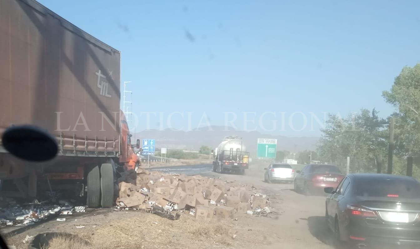 Por tal motivo, a la altura del hotel Kavia, el tráfico está detenido mientras las autoridades atienden el accidente, que afortunadamente solo dejó pérdidas materiales. Cabe destacar que uno de los tráilers estaba cargado con cajas de cerveza.