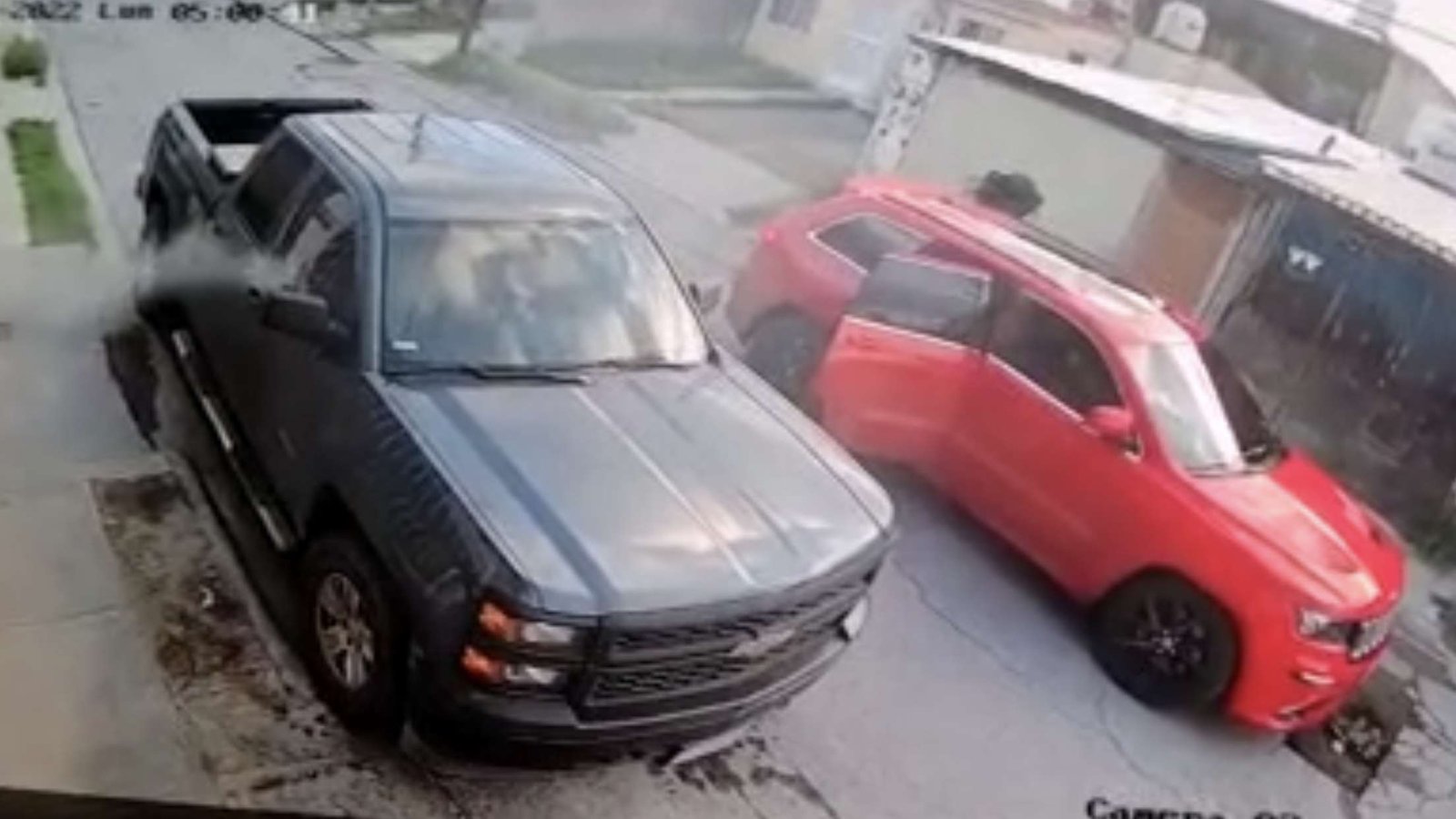 Imágenes de una cámara de seguridad mostraron como el policía salió de su vivienda, en la calle Silvano Prats y subió a una camioneta tipo pick up de la marca Chevrolet.