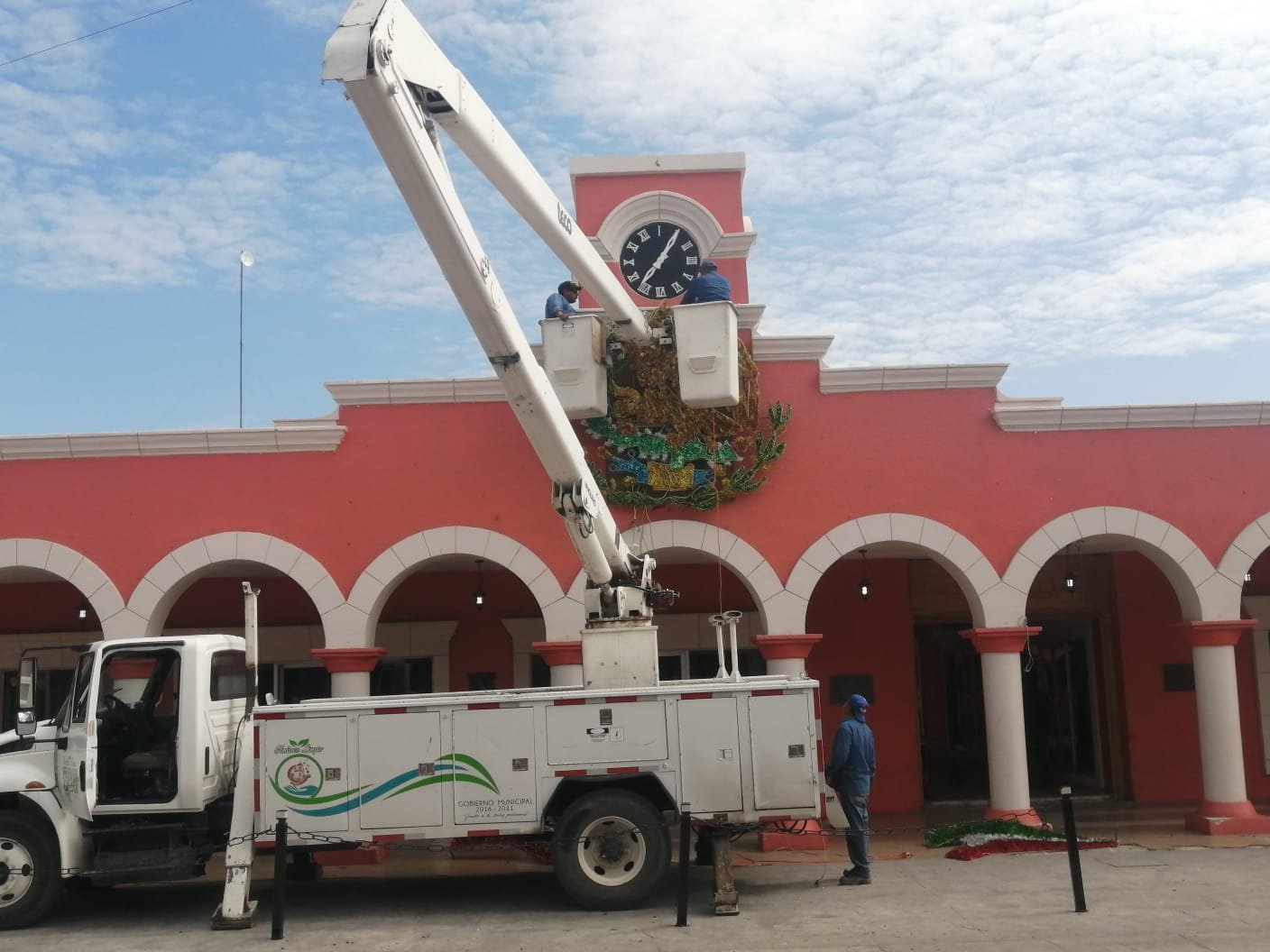 El departamento de Servicios Públicos comenzó la colocación de adornos alusivos al mes de septiembre, el director de dicho departamento, Jesús Cordero, indicó que son los mismos que se utilizan en años anteriores sin generar gasto a la administración.