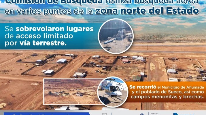 El sobrevuelo abarcó los Municipios de Sueco, Villa Ahumada, así como brechas y campos menonitas ubicados en esta zona y se efectuó a una altura 140 pies, con el fin tener una mayor visibilidad de los puntos recorridos.