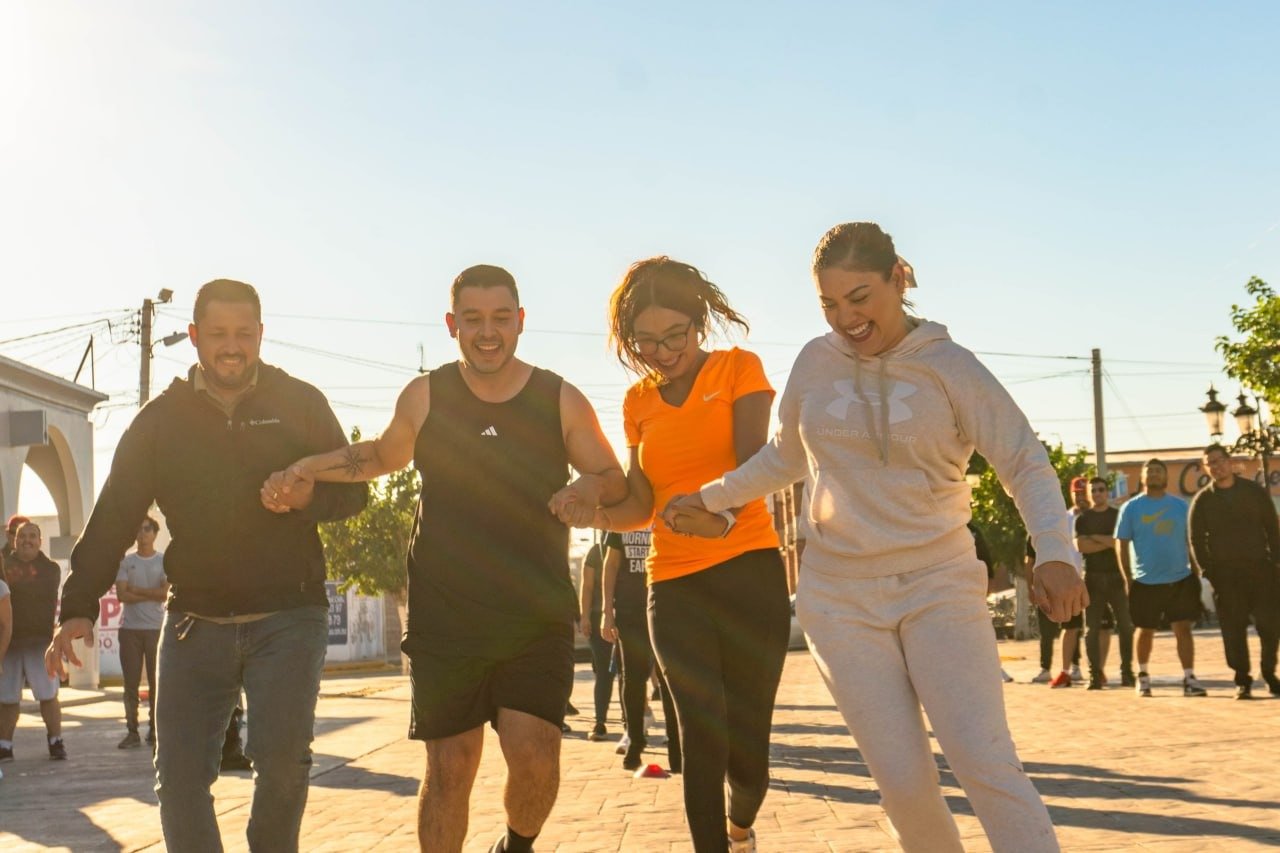 La alcaldesa de Meoqui, Miriam Soto, encabezó una activación física con colaboradores de Presidencia Municipal, unidos al programa “Semana de Municipios Juntos en Movimiento” convocado por la Secretaría de Salud, a través del Instituto Chihuahuense del Deporte y Cultura Física de Gobierno del Estado, con el objetivo de promover hábitos saludables.