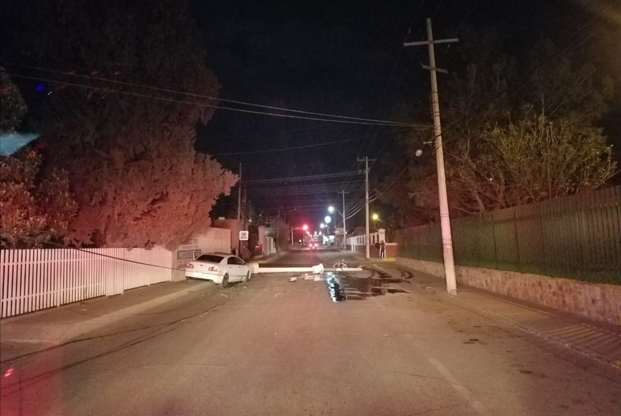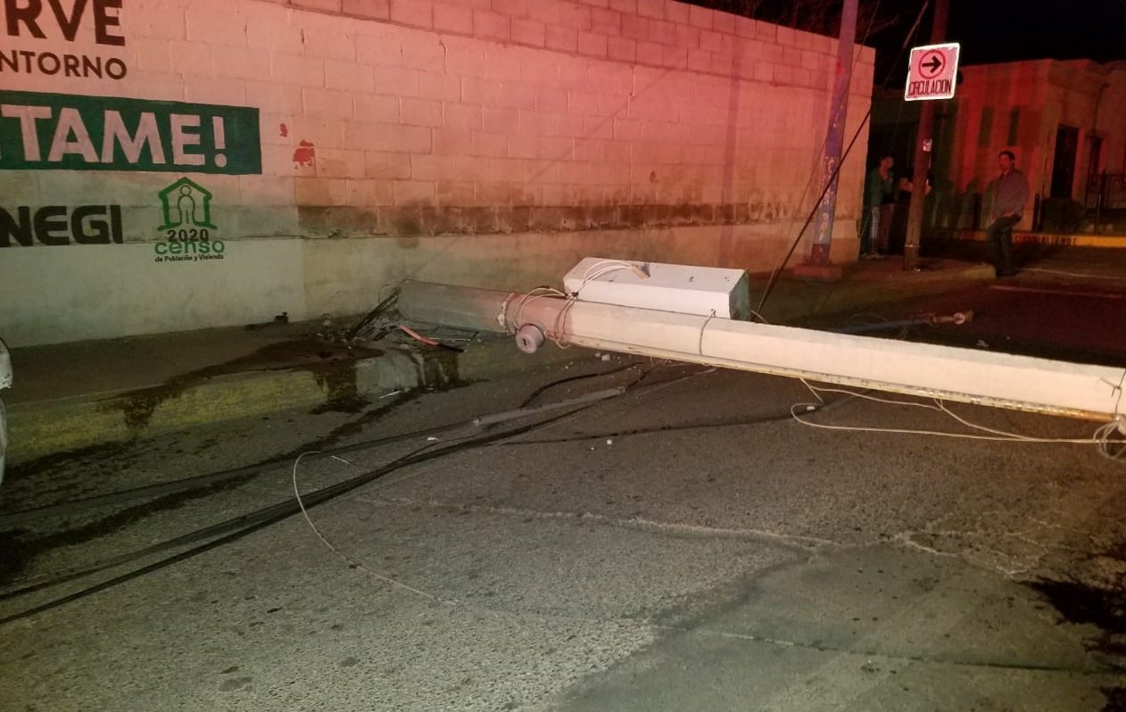 Esta madrugada se presentó un choque en la intersección de las calles Centenario y Allende donde un conductor derribó un poste y por tal motivo quedó detenido.