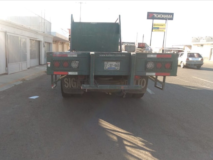 Según la información proporcionada en el lugar, el conductor de la camioneta tipo pick up, de color blanca, no se percató del tope y se impactó contra la traila del camión verde, quedando únicamente en daños materiales.