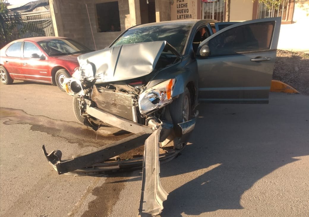 El presunto responsable es el conductor de un Dodge Caliber, color gris, quien al parecer omitió un alto e impactó a una camioneta marca Chevrolet, línea 1500, de color blanco.