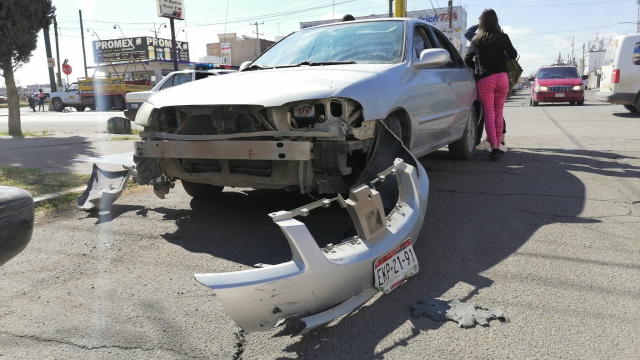 Un accidente vial tipo choque dejó a una persona lesionada en la avenida del parque y calle séptima y media, así como también un auto quedó destrozado de la parte frontal.