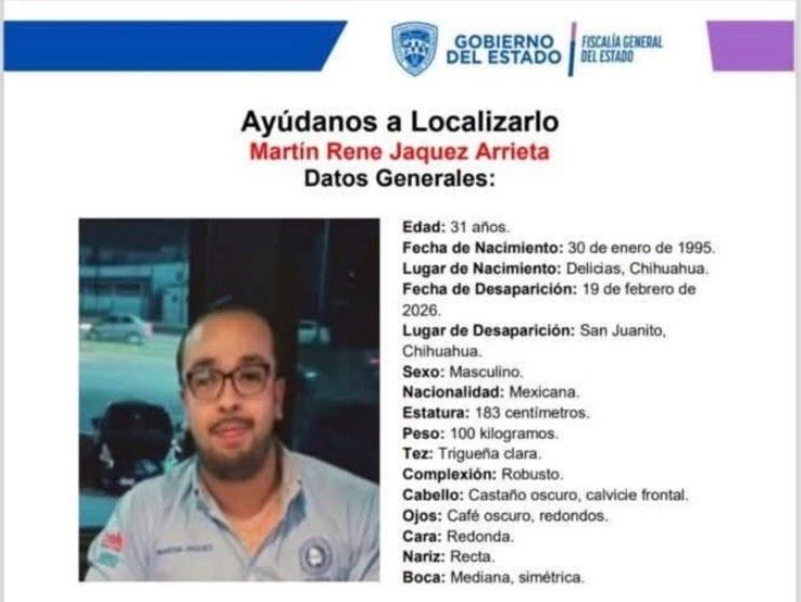 El personal de la Fiscalía General del Estado confirmó el hallazgo de Martín René Jáquez, el joven que había sido reportado como desaparecido desde el pasado 19 de febrero, así como la unidad en la que viajaba, perteneciente a la empresa refaccionaria para la que prestaba servicio de distribución de productos.