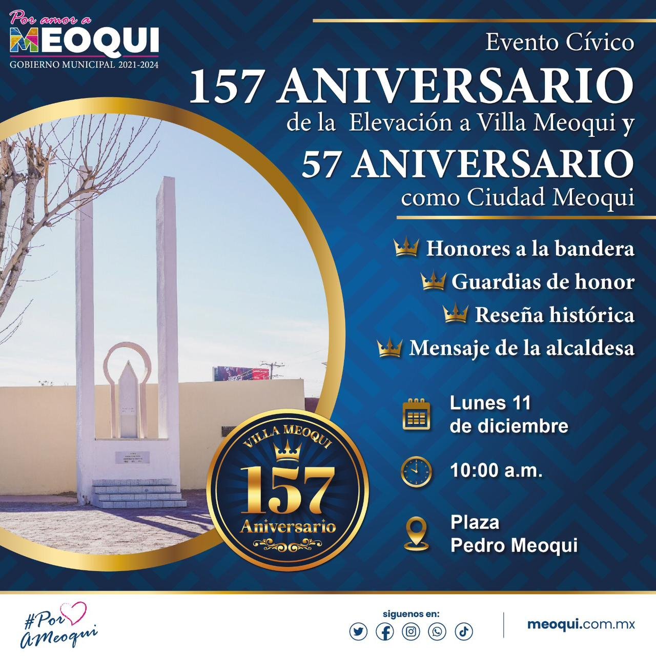 Con el objetivo de conmemorar el 157 aniversario de elevación a Villa Pedro Meoqui, este lunes a las 10:00 de la mañana, el Gobierno Municipal de Meoqui encabezado por la alcaldesa Miriam Soto, realizarán el evento cívico en la Plaza donde yacen los restos del General, en el que llevarán a cabo una Guardia de Honor, esto como parte del Programa de estas festividades.
