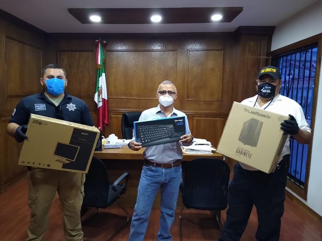 La Cruz.- Con la finalidad de seguir fortaleciendo las actividades que realizan los elementos de la Dirección de Seguridad Pública Municipal, el Alcalde Adolfo Trillo Herrera hizo entrega de equipo de cómputo a la corporación.