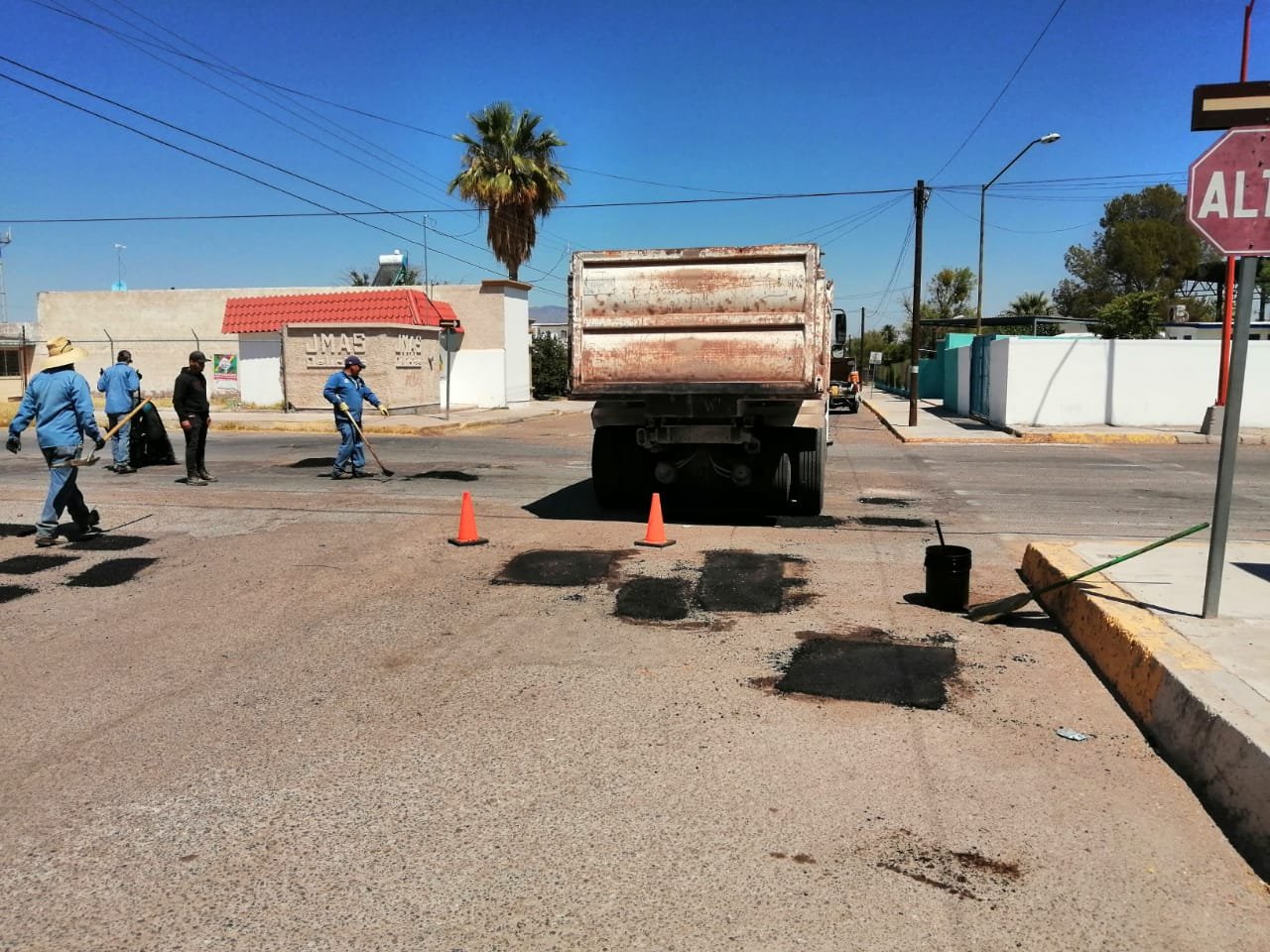 Delicias.- Con el propósito de darle mantenimiento a las calles de la ciudad, personal de Obras Públicas continúa con el programa intensivo de bacheo en diferentes sectores de la ciudad, tanto en colonias urbanas como en rurales.